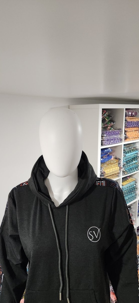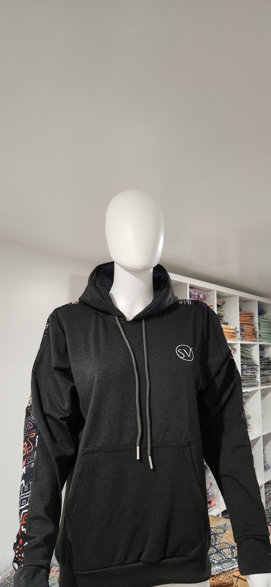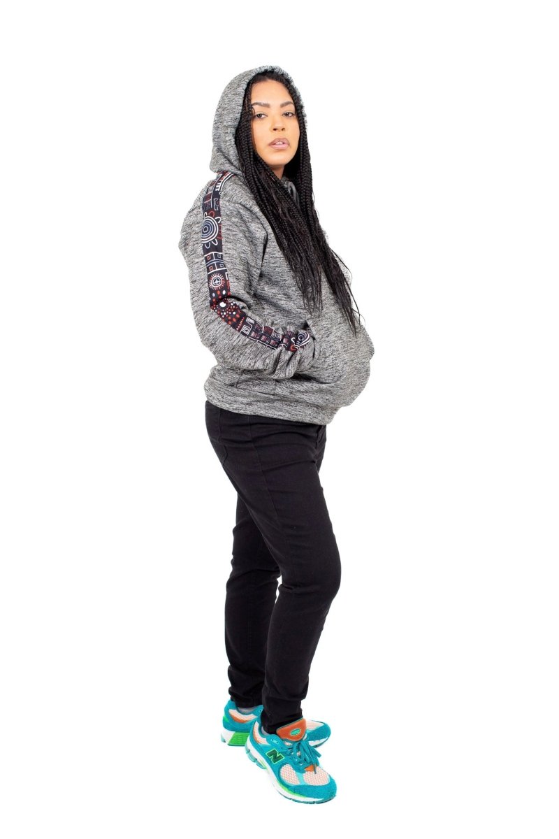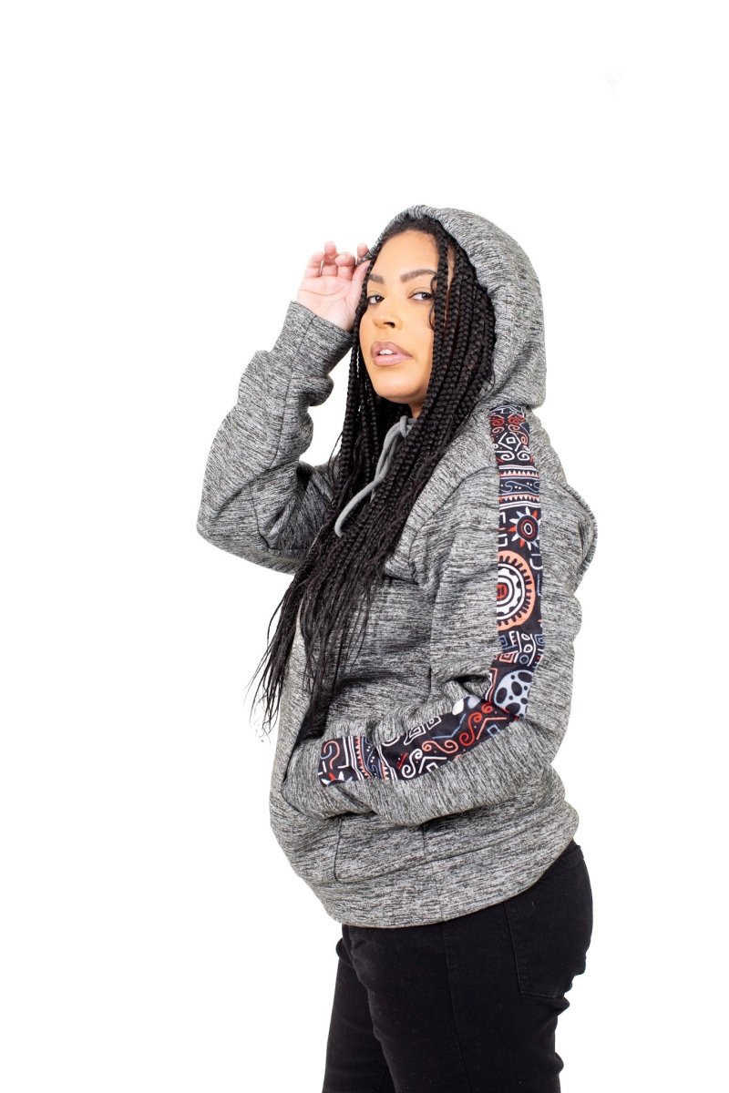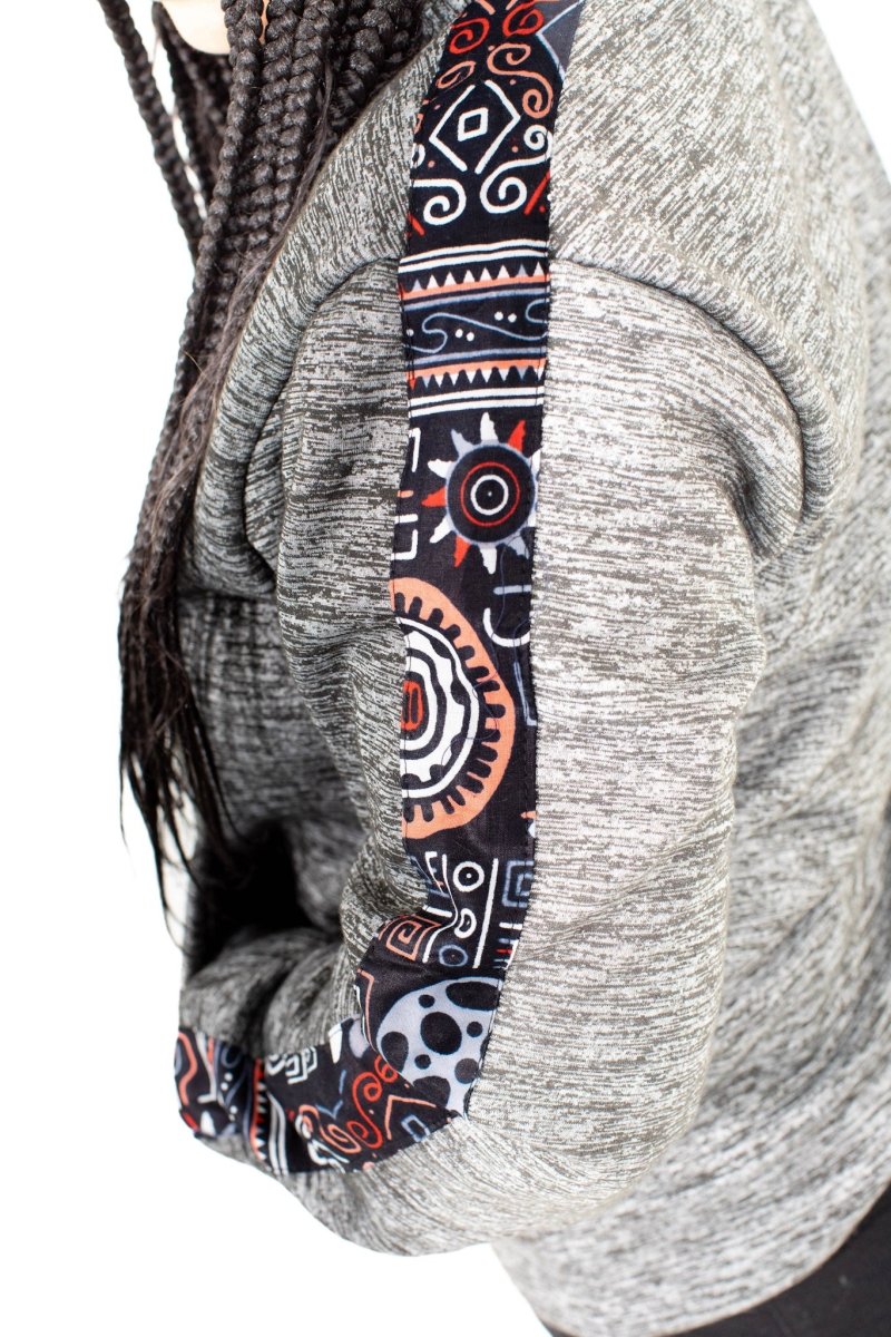 Handmade Heather Grey Hoodie with Tribal African Print Sleeve – Smooth Visage