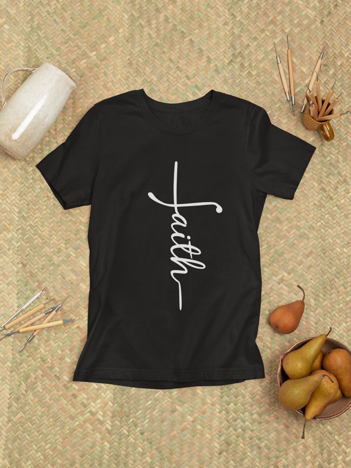 Keep your faith front and center with this minimalist "Faith" cross t-shirt. Designed with a powerful, clean script that forms a cross, this shirt is a subtle yet meaningful way to express your beliefs. Crafted from soft cotton, it's breathable and comfortable for everyday wear, church events, outreach programs, or relaxed weekends. A must-have for every faith-driven wardrobe.