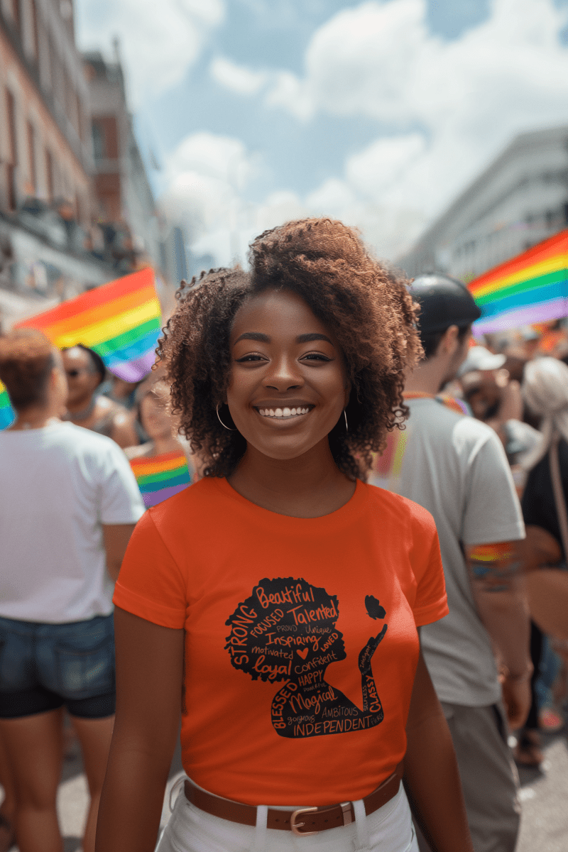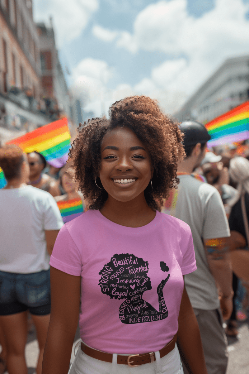 Strong, Beautiful & Confident – Afro Empowerment Word Art T-Shirt