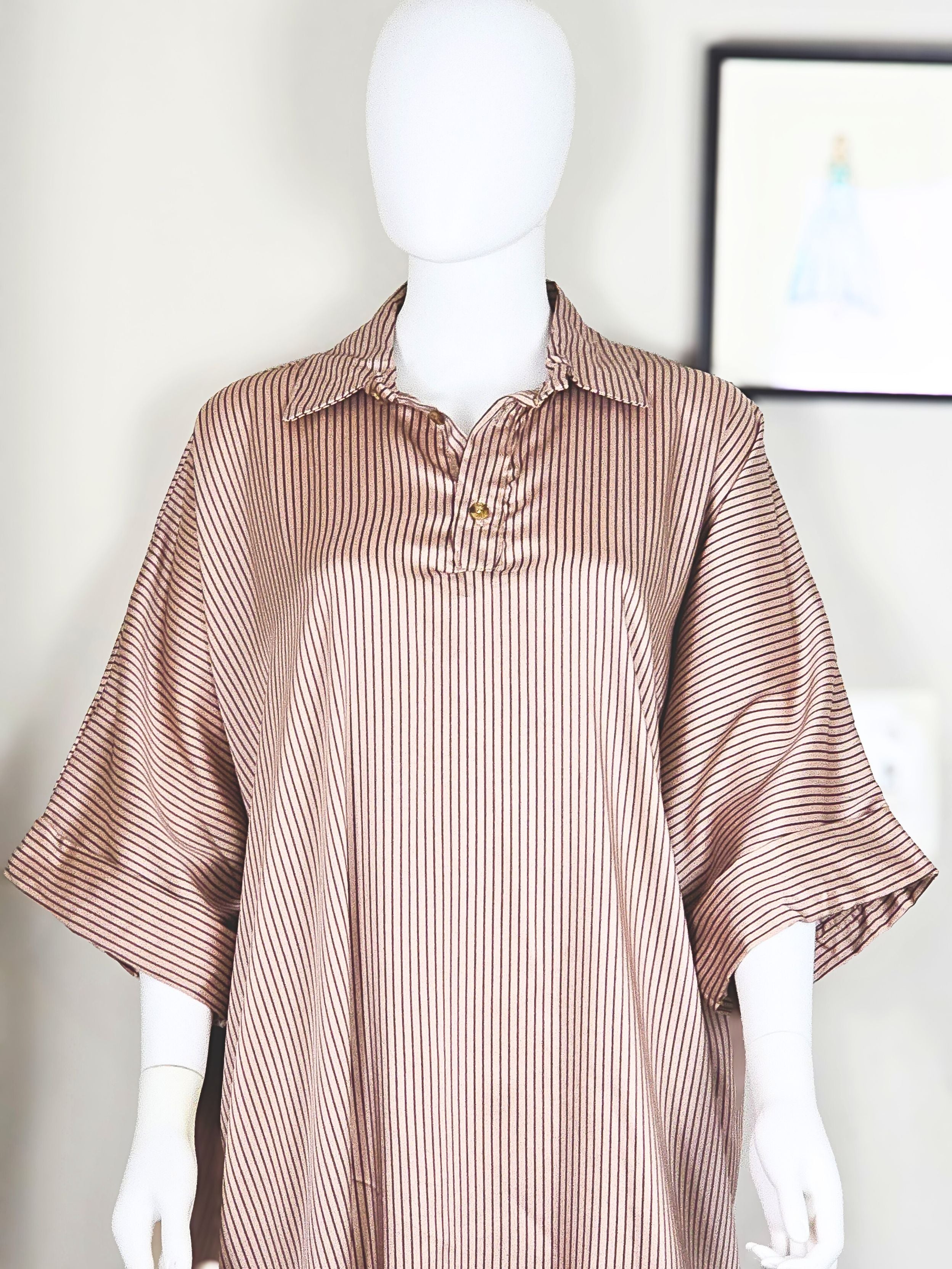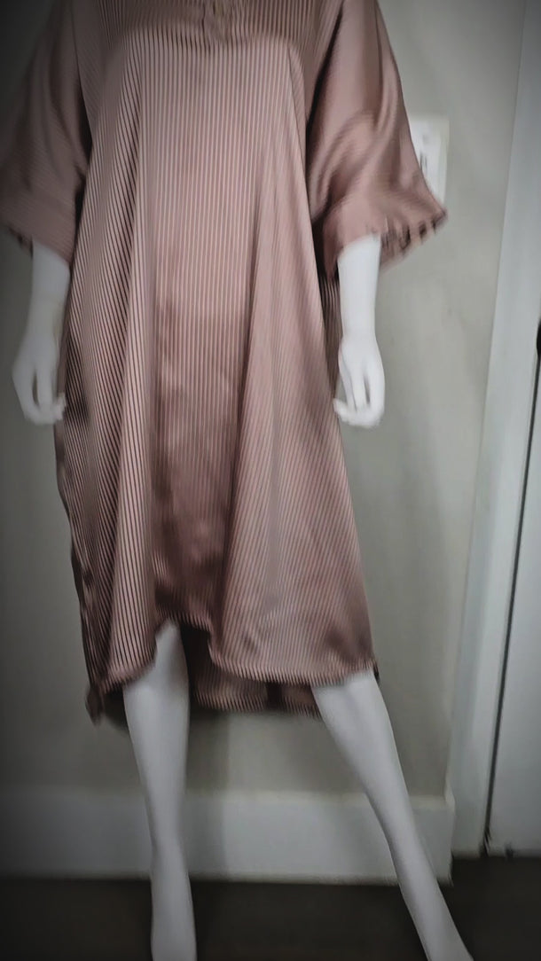 Introducing our Elegant Striped English Silk Gown, a timeless piece designed for the woman who values comfort and class. Made with premium soft silk and subtle vertical stripes, this gown offers a flowy silhouette and a relaxed fit that drapes effortlessly on the body. Perfect for lounging in luxury or stepping out with understated sophistication.