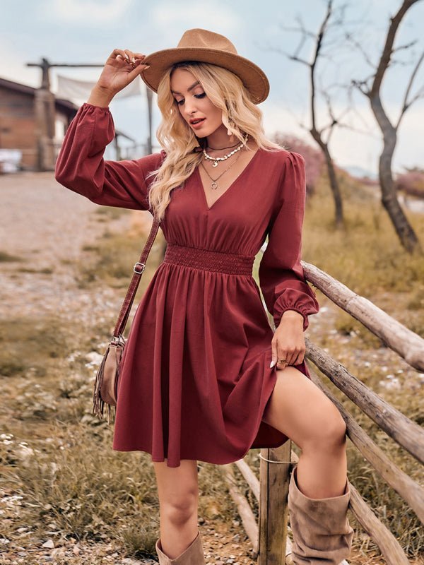 This stretch elastic waist long sleeve slim fit dress offers a comfortable and flattering fit for any occasion. With its elastic waistband and slim fit design, it accentuates your natural curves while providing full range of motion. The long sleeves add a touch of sophistication and versatility, making it a perfect addition to your wardrobe. Experience comfort and style in one with this dress.