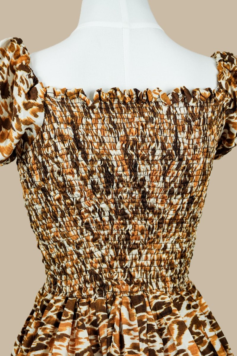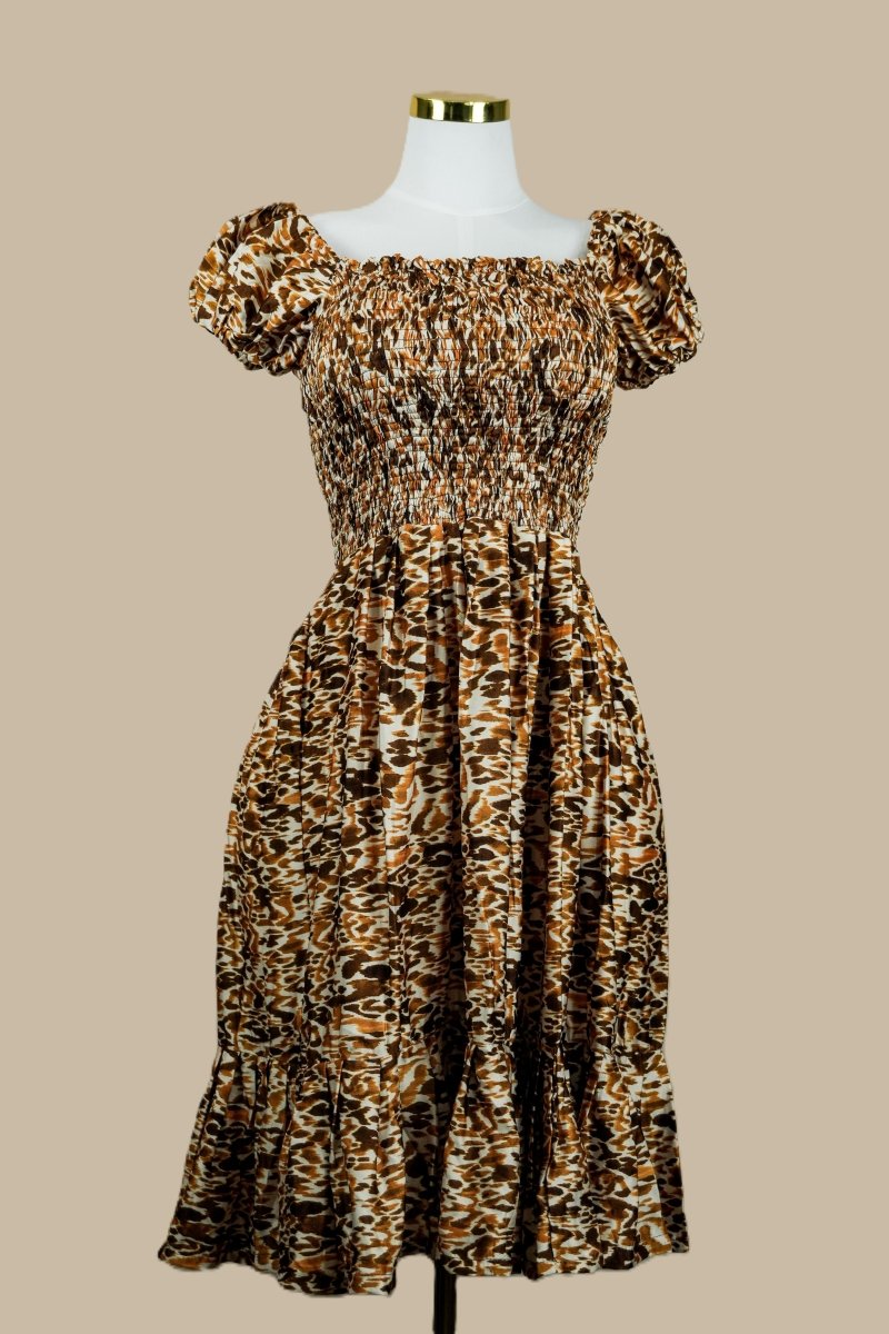 Women's Leopard Print Smocked Midi Dress – Puff Sleeve Dress by Smooth Visage