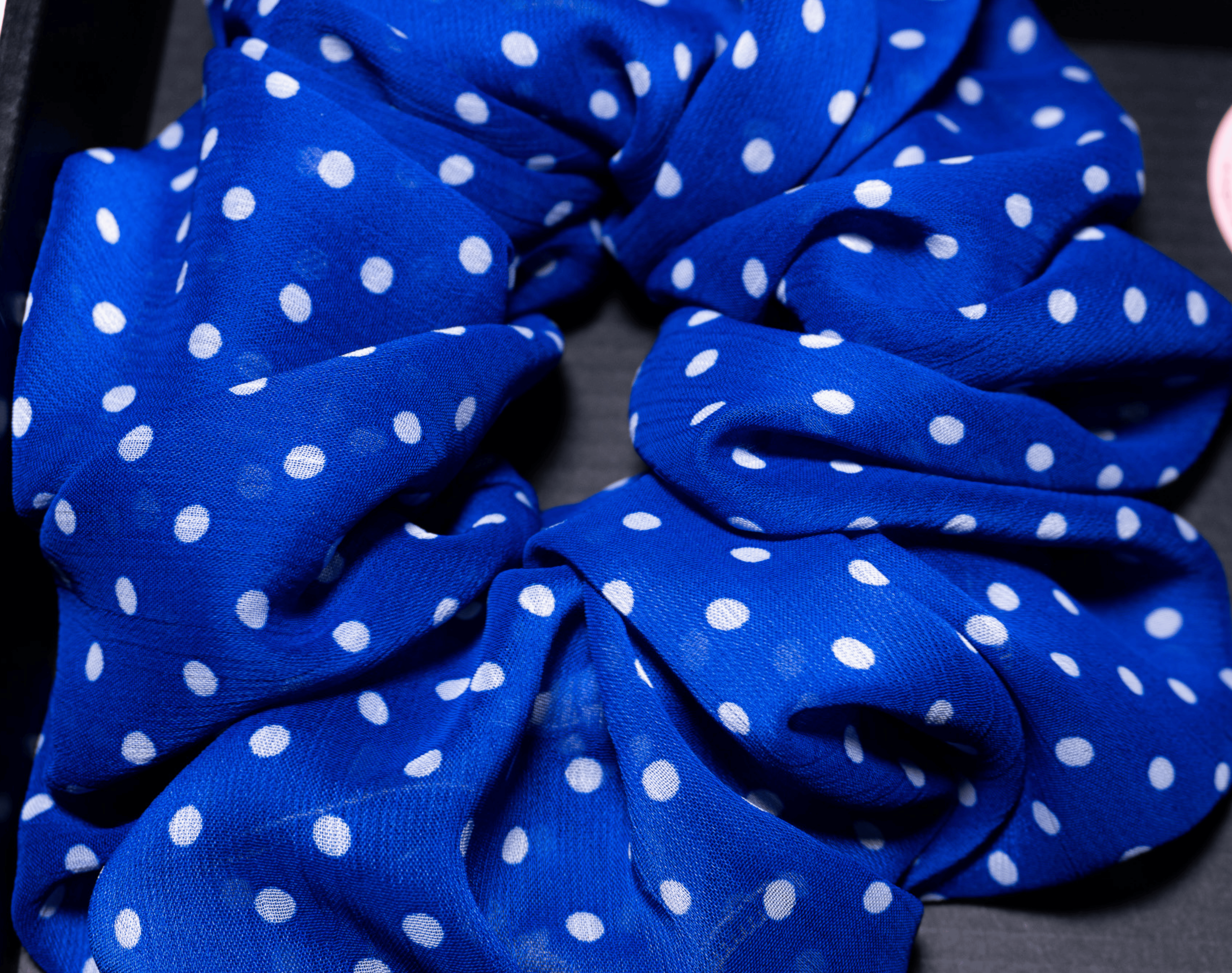 Royal Blue Polka Dot Satin Scrunchie – Mini, Large & XXL | Smooth Visage