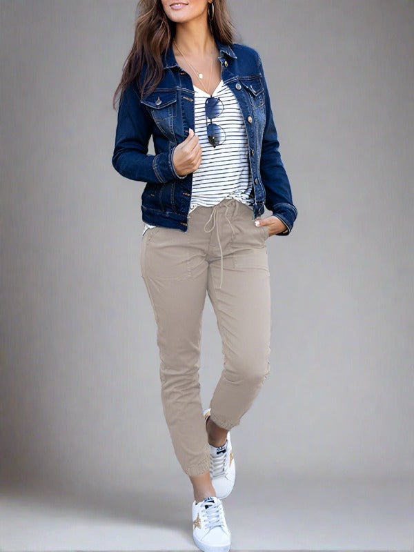 This Women's Slim Pocket Cropped Pants are designed for versatile wear, adding a pop of color to any outfit and flattering your figure without sacrificing comfort. The lace-up design adds a touch of interest while the comfortable fabric allows for unrestricted movement. Perfect for any occasion, these trousers will make you look and feel confident and beautiful.