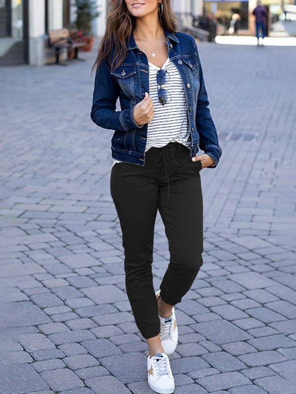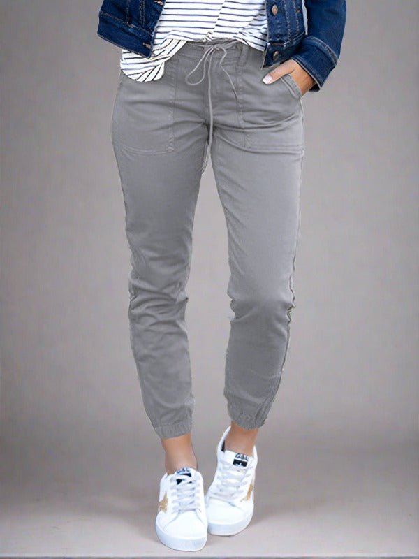 Women's Slim Pocket Cropped Pants New Solid Color Lace-Up Leisure Pants